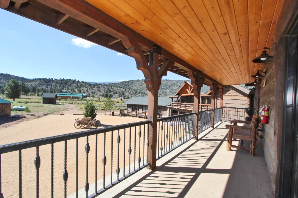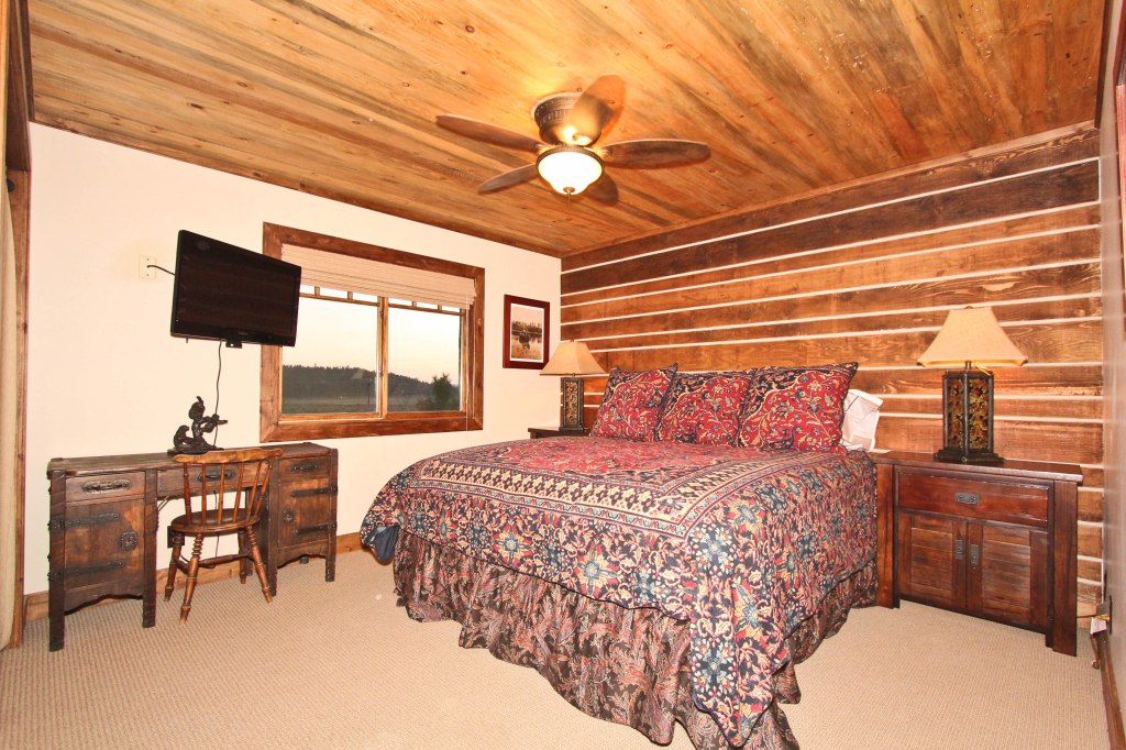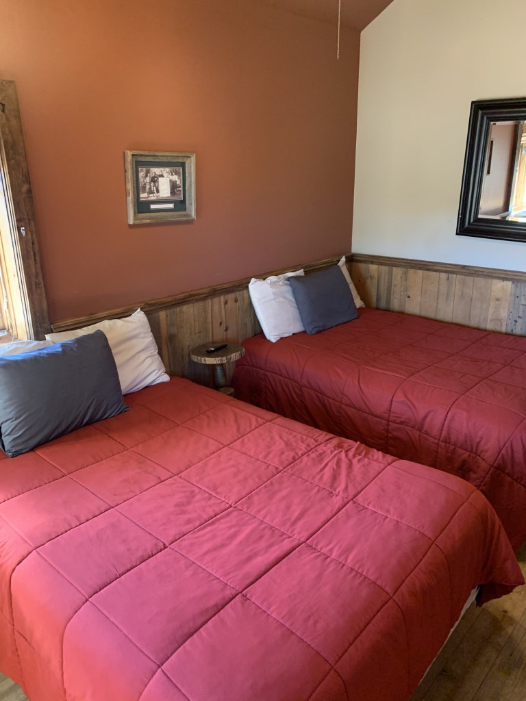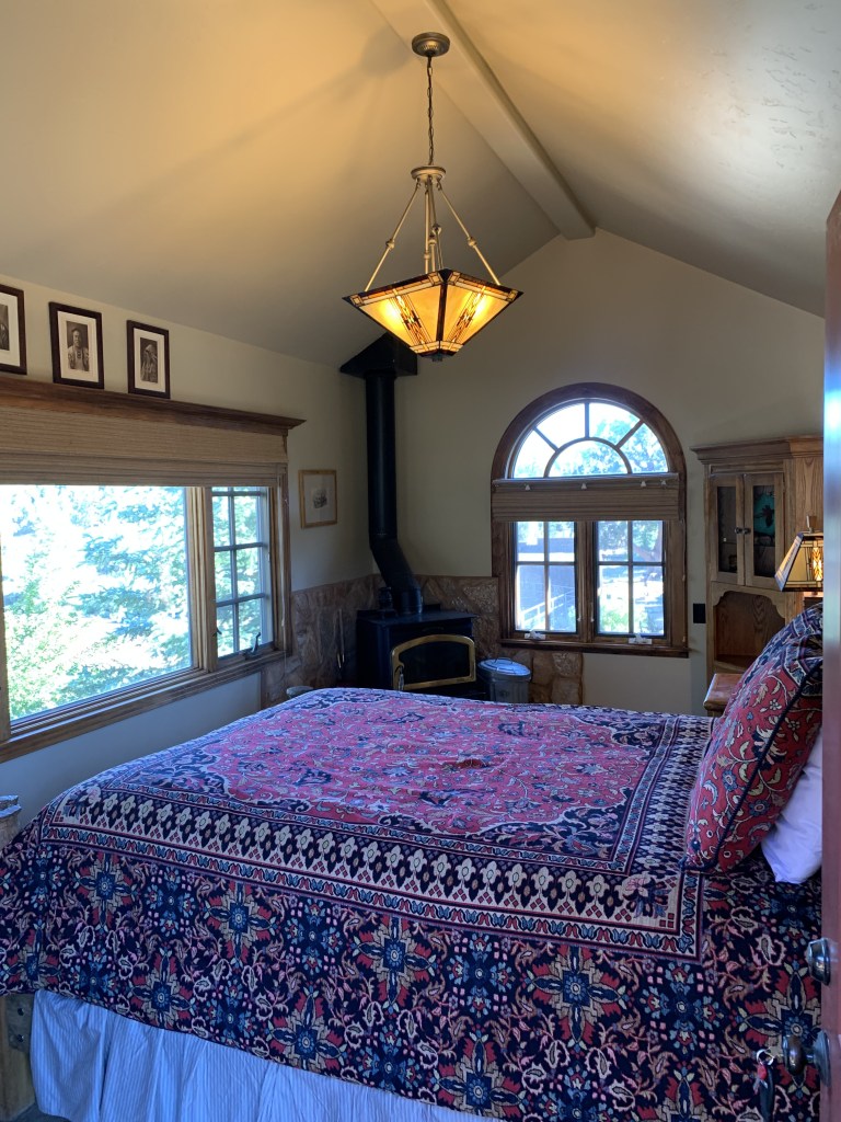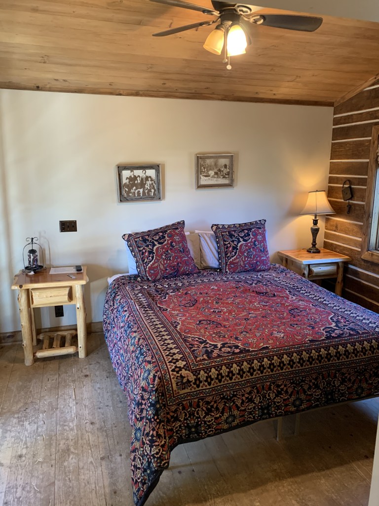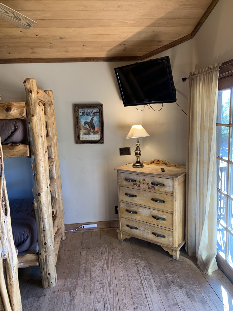 This is a charming little cabin attached to, and just below, The Bunkhouse. It offers two full size beds and a bathroom. Sancho’s Cabin also has its own wrap-around deck.